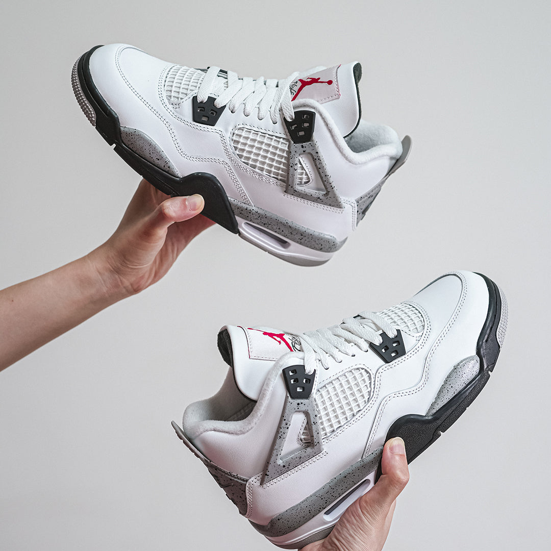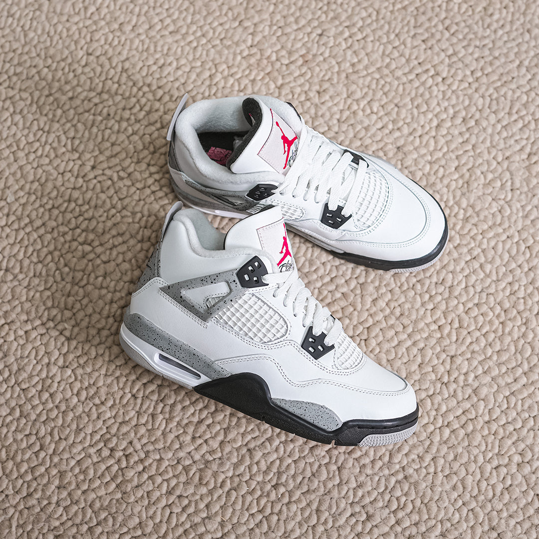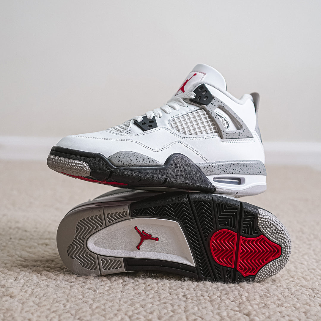 The women’s Air Jordan 4 Retro “White Cement” GS (IB4171-100) revives the iconic AJ4 look with premium leather, visible Max Air cushioning and the signature Cement Grey speckled accents. women’s sizes GS 6.5Y ≈ W 8 (see size guide below) — perfect for everyday wear and the most loved White Cement colourway in the UK.